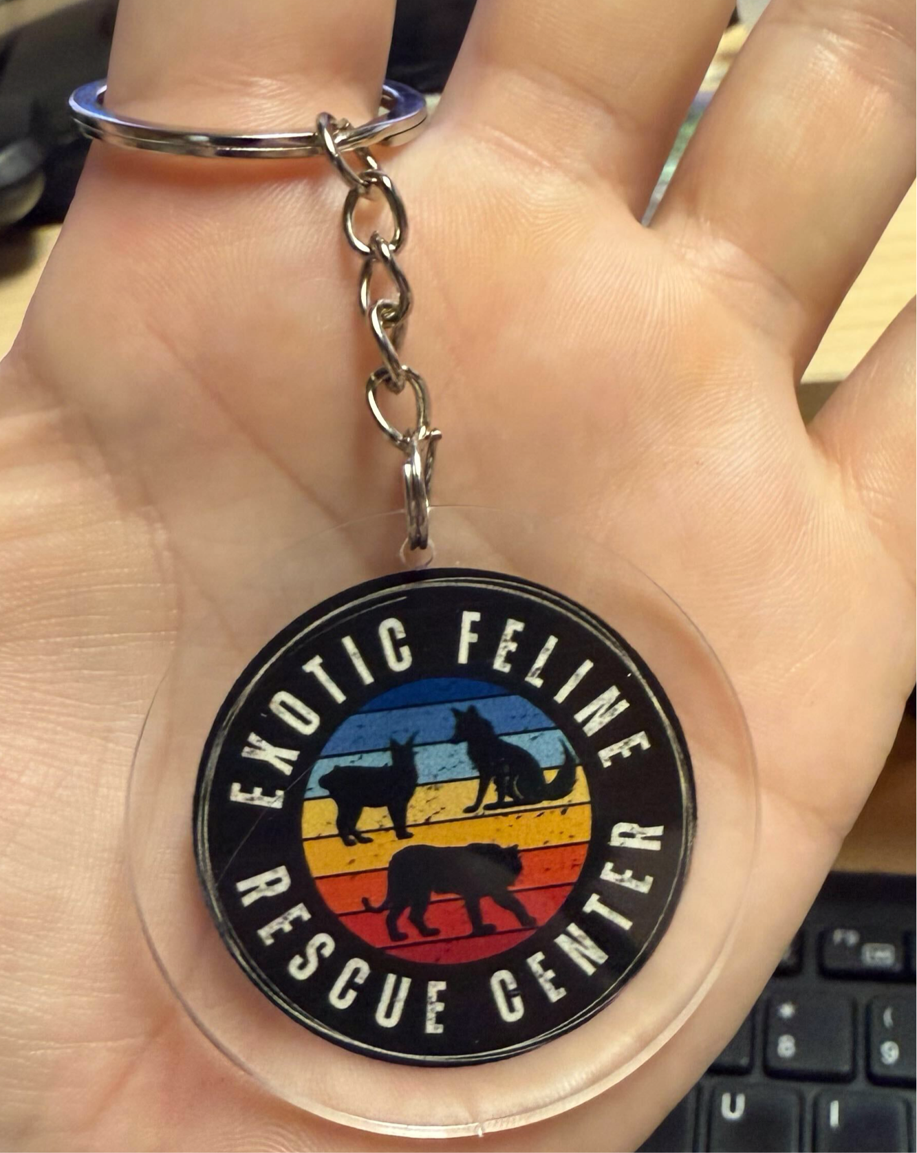 Carry your pride wherever you go! This vibrant acrylic keychain features the Exotic Feline Rescue Center logo in bold, eye-catching colors. Durable and lightweight, it's the perfect way to show your support for our mission while keeping your keys organized. A fun accessory that sparks conversations and spreads awareness about animal rescue.
